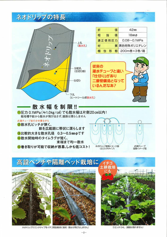 住化農業資材 灌水チューブ ハウス向け / ネオドリップヨコシタ02L WB9020 / 200M×3巻 80mまで均一潅水 / 潅水チューブ 灌水チューブ 散水チューブ 潅水 灌水 散水 ホース 農業用 農業資材 園芸 / トマトベンチ栽培 トマト パプリカ ピーマン ナス等果菜類 キク