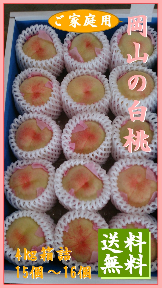 【予約商品】岡山白桃4kg箱詰家庭用フルーツ14個〜16個※お届けは7月10日以降予定