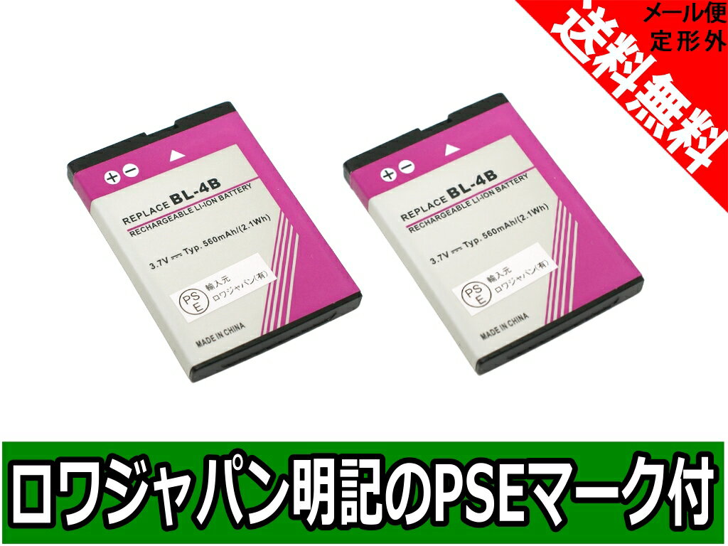 ●定形外送料無料●【実容量高】【2個セット】『ノキア/NOKIA』BL-4B 互換 バッテリー【ロワジャパンPSEマーク付】